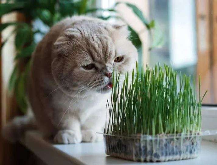 After about 5 to 7 days after sprouting, the grass should be about 4 inches tall, and you can give your cat access to the grass. Your cat can eat directly from the container.